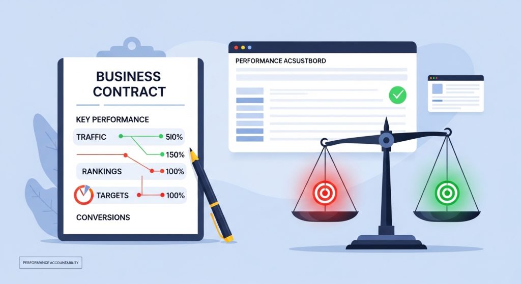 | Performance | “Strategy review required if organic traffic declines 20%+ for 2 consecutive months.” | No performance accountability clause included |