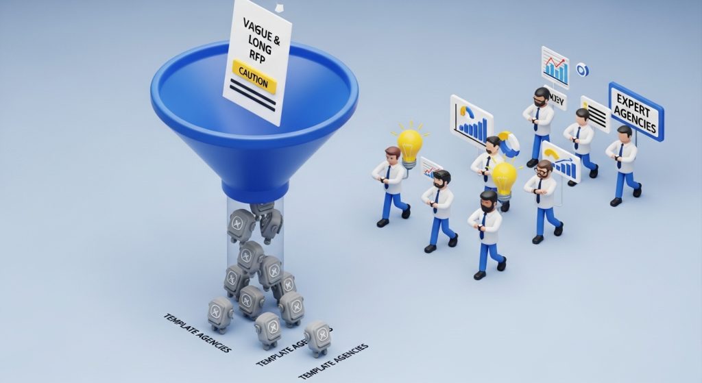 At the same time, template-driven agencies that produce dozens of generic proposals per week respond to everything. The result is that poorly written RFPs attract the wrong agencies and filter out the right ones.